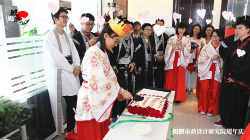 为了迎合主题,体现又是一轮新的开始,市政设计院的所有家人身着汉服穿越古今参加了周年Party,展现了市政院既独树一格又恪守本职的风范。