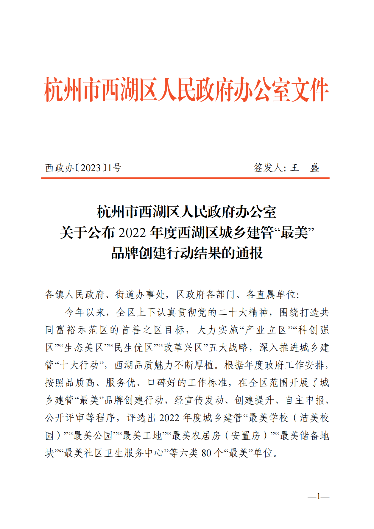 近日,杭州市西湖区人民政府办公室公布2022 年度西湖区城乡建管“最美”品牌创建行动结果,由平安建设集团有限公司承建的葛衙庄二期工程被评为“最美农居房(安置房)”。